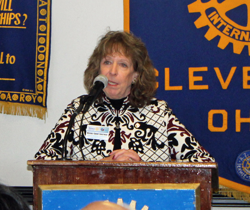 After the award presentation, Cleveland Rotary past-president Beverly Ghent-Skrzynski introduced keynote speaker Valarie J. McCall, the Chief of Government & International Affairs of the City of Cleveland.
