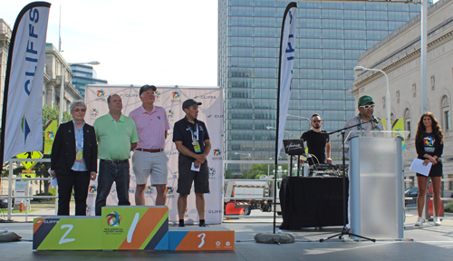 At the Closing Celebration on Sunday July 21, 2024 medals were awarded for the last events such as the 10K race. Bridget Linton served as MC for a brief closing ceremony.