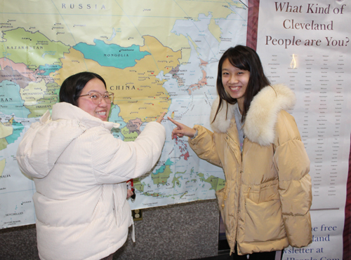 The Lunar New Year or Spring Festival is commonly referred to as Chinese New Year, Tet in Vietnamese, Seollal in Korean, Losar in Tibet, and Tsagaan Sar in Mongolian. There was a two-day celebration of Lunar New Year at Asia Plaza as we entered the Year of the Wood Snake. ClevelandPeople.com was honored to be a Media Sponsor and have a table at the event. We brought our large map of Asia and it was very busy with people studying it and posing in front of it. As we like to do, we asked people to pose while pointing to the land of their heritage on the map. We were very happy at the diversity of people and made a lot of friends! The heritages included China, Burma (Myanmar), Malaysia, Korea, Japan, Philippines, Thailand, Laos, India, Indonesia, Taiwan and more.