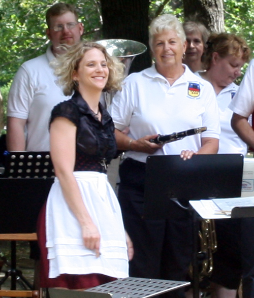 The Schuhplattler und Trachtenverein Bavaria Singers sang the US and then the German National Anthem to begin the 4th annual Conrad Mizer/Karl Wolfram Memorial Garden Concert in the German Cultural Garden in Cleveland Ohio.