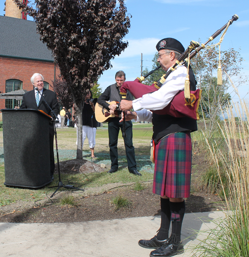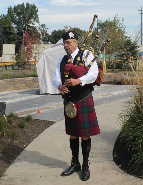 Irish American Club East Side Pipe Major Bruce Grieg began the ceremony as he marched in playing A Nation Once Again, God Bless America and other songs on the bagpipes.