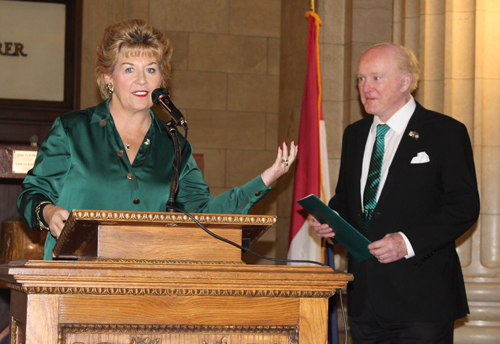 Geraldine Byrne Nason, Ireland's Ambassador to the US, was in town for the annual conference of Irish Network USA, the national umbrella organization integrating the Irish Networks that exist in various cities across the United States. Before the reception she joined former US Ambassador to Ireland Ed Crawford at the Irish Cultural Garden in Cleveland.