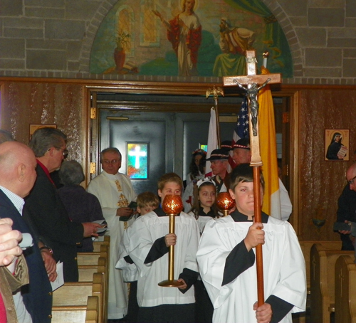The Processional into Church included marchers in traditional Polish costumes and a banner of Pope John Paul II.