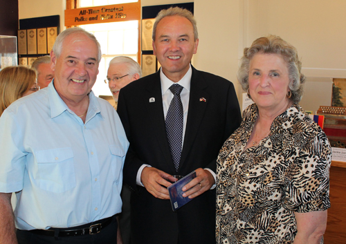 Joe Valencic explained the history of Polka music and the Polka Hall of Fame to Slovenian Ambassador Roman Kirn.