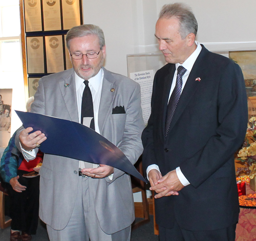 Ohio State Representative Kenny Yuko presented a proclamation to Slovenian Ambassador Roman Kirn.